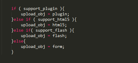 拿最近做的一個需求來舉例, 有個文件上傳的功能, 提供了控件,html5, flash, 表單上傳這4種上傳方式. 根據它們的優先級以及浏覽器支持情況來判斷當前選擇哪種上傳方式. 在我進行改造之前,它的偽代碼大概是這樣: