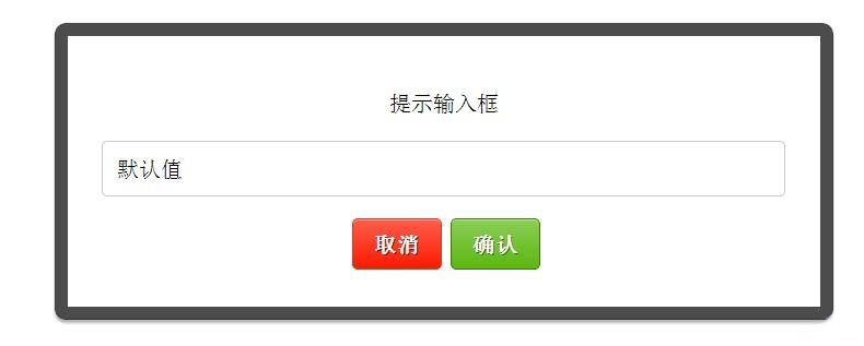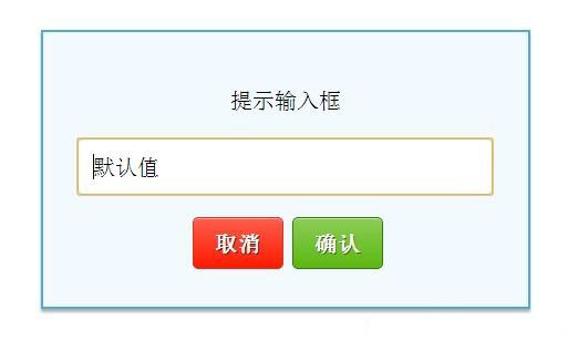 1 2 3 4 5 6 7 8 9 10 11 12 13 14 15 16 17 18 19 20 21 22 23 24 25 26 27 28 29 30 31 32 33 34 35 36 37 38 39 40 41 42 43 44 45 46 var $ = function (id) { return document.getElementById(id); }, //初始化操作 reset = function () { alertify.set({ labels : { ok : "確認", cancel : "取消" }, delay : 5000, buttonReverse : false, buttonFocus : "ok" }); }; //綁定 $("alert").onclick = function () { reset(); alertify.alert("提示框"); return false; }; //綁定 $("confirm").onclick = function () { reset(); alertify.confirm("確認框", function (e) { if (e) { alertify.success("點擊確認"); } else { alertify.error("點擊取消"); } }); return false; }; //綁定 $("prompt").onclick = function () { reset(); alertify.prompt("提示輸入框", function (e, str) { if (e) { alertify.success("點擊確認,輸入內容為: " + str); } else { alertify.error("點擊取消"); } }, "默認值"); return false; };顯示結果(輸入提示框):