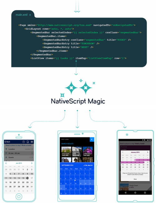 作為免費開源項目的NativeScript,它的源碼已經托管至Github上,讓開發者可以沒有任何門檻約束的隨意使用。除了無需學習新的編程語言,使用大家所熟識的JavaScript編碼及CSS打造應用樣式外,NativeScript的強大之處還有使用跨平台的UI抽象、共享業務邏輯和第三方原生庫。
