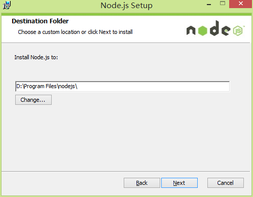 步驟4:Node.js默認安裝路徑為“C:Program Filesnodejs”,你可以修改,在這裡我改到了D盤,單擊Next,出現安裝模式及模塊選擇界面: