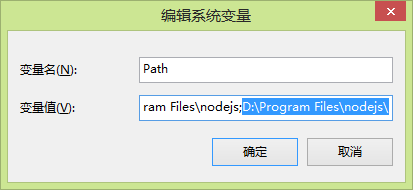 點擊“編輯”,在最後添加上nodejs安裝目錄即可:
