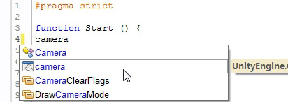 除了JavaScript函數,C#和BOO的腳本都需要預先載入類庫。這裡以C#為例: