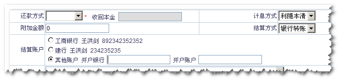 最後一個RadioButtonList的ListItem為“其他賬戶",當選中時,其後增加相應的asp.net服務器控件。選擇其它時移除該控件。