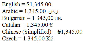 當我們在浏覽器打開這個頁面的時候,所有的東西都是按照德語習慣正確顯示。貨幣符號采用的是歐元符號,日期采用德語的日期和月份名稱,並且,數字分隔符用的是點號(.),而不是逗號(,)。