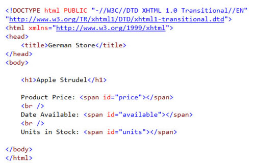 假如你要創建一個德文的網站,並且希望在客戶端的javascript腳本裡使用德語習慣顯示所有的日期、貨幣符號和數字。那頁面的源代碼也許與下面的HTML類似: