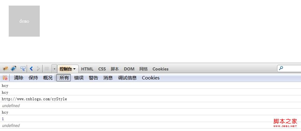 data(demo, "myBlog", "http://www.cnblogs.com/cyStyle");