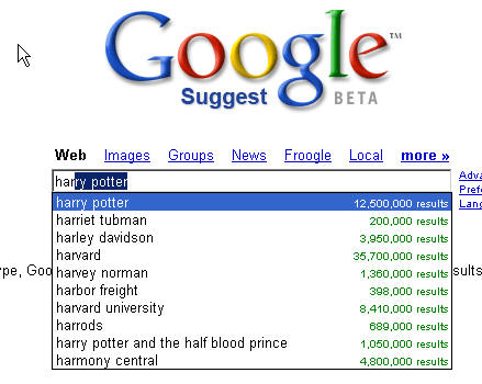 試用了一下發現又是一個好玩的東西,是提示搜索一類的東西,當你輸入幾個字符,google suggest便會提示你10則以所輸入字符為為前綴串的熱門關鍵字。