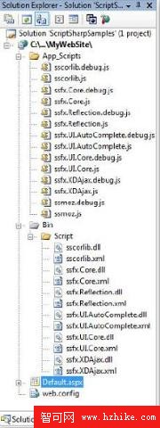 這個Web site結構看上去你會看到Script# assemblIEs 是在Bin\scirpt文件夾裡面和相應的debug和release scirpt文件是在App_Script folder文件夾裡面.
