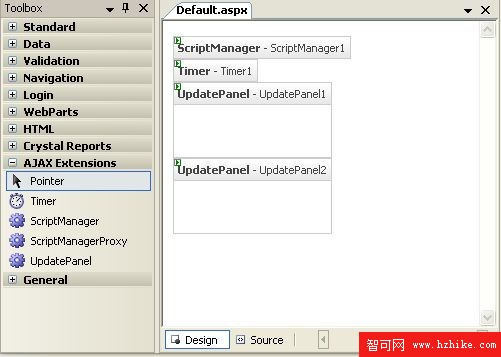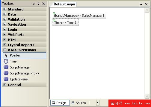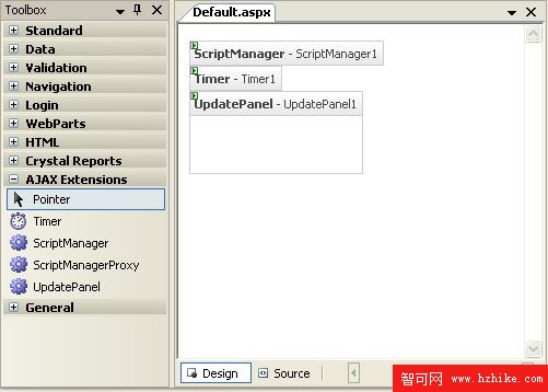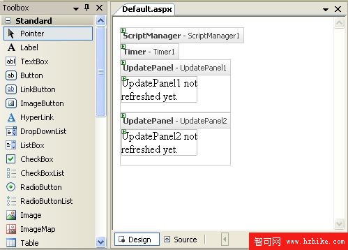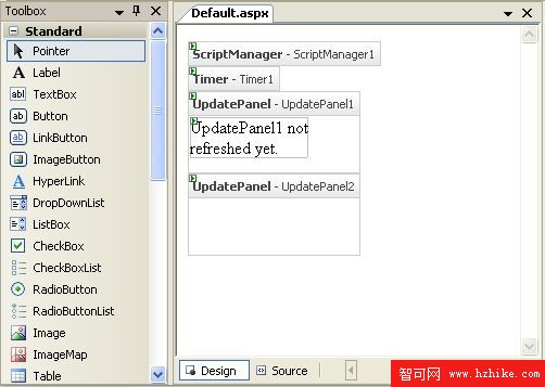 3.雙擊Timer控件添加到Web頁面中。Timer控件可以作為UpdatePanel的觸發器不管它是否在UpdatePanel中。