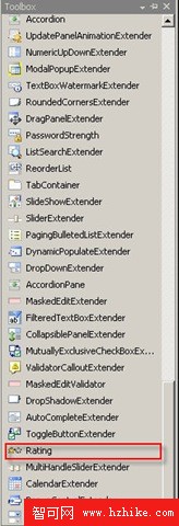 4. 添加好控件後,在工具箱中就可以像標准的ASP.Net控件一樣使用Rating控件了。
