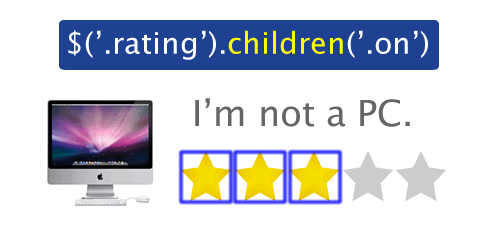 在第二行,我們得到了我們點擊的當前對象。但是,如何得到stars的父級?即div.rating。但是,在一個頁面中,有很多div.rating。哪一個是我們想要的?如何獲得“this”左邊所有的star?