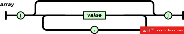 ·數組是有順序的值的集合。一個數組開始於"[",結束於"]",值之間用","分隔。