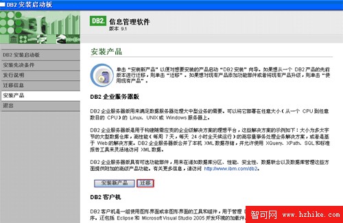 在圖 1 所示的“安裝產品”的面板上選擇“遷移”舊的數據庫系統;