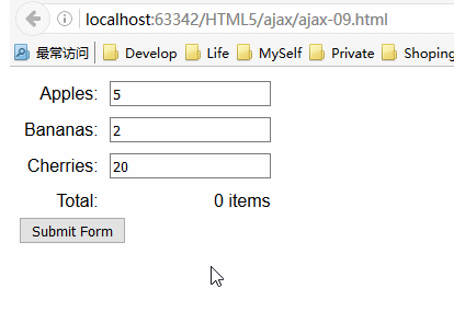 這個響應很簡單,實現效果是讓服務器計算出了用戶通過form中各個input元素所訂購的水果總數。服務器得端腳本的其余部分負責解碼客戶端用Ajax發送的各種可能數據格式。
