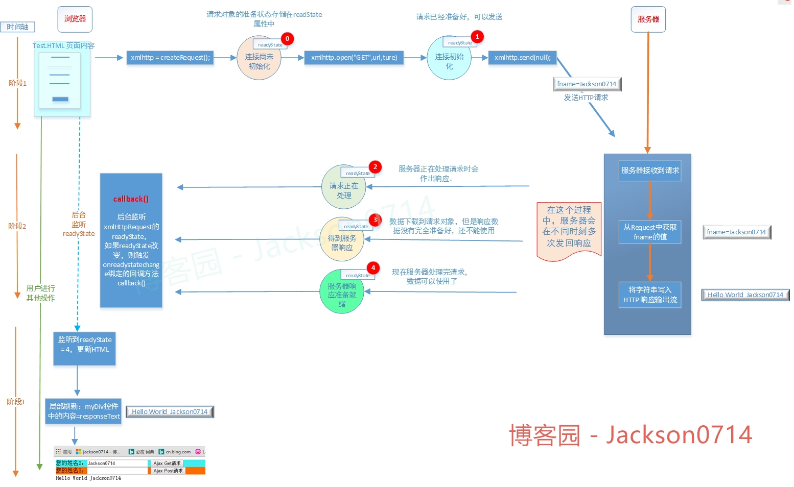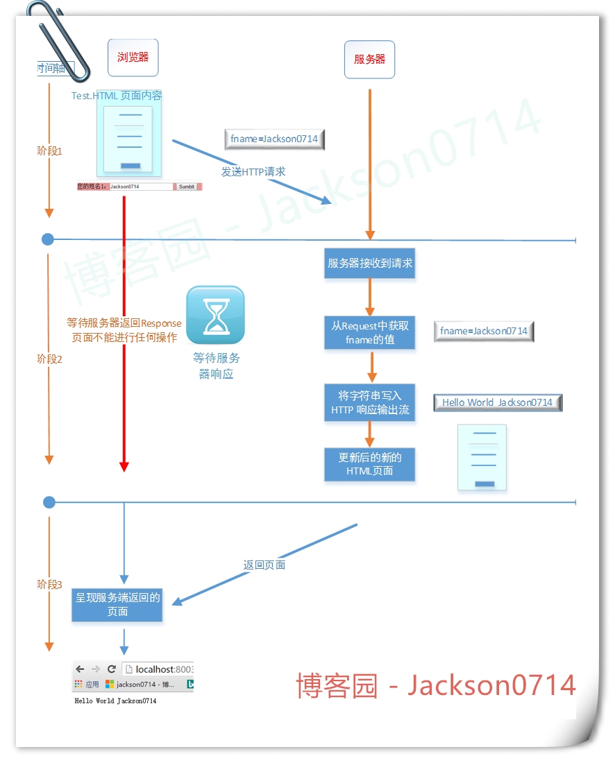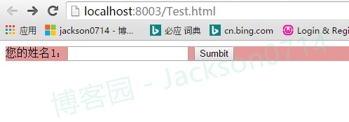 2.輸入“Jackson0714”然後點擊Sumbit按鈕,頁面不會刷新,在最下面顯示"Hello World Jackson0714"