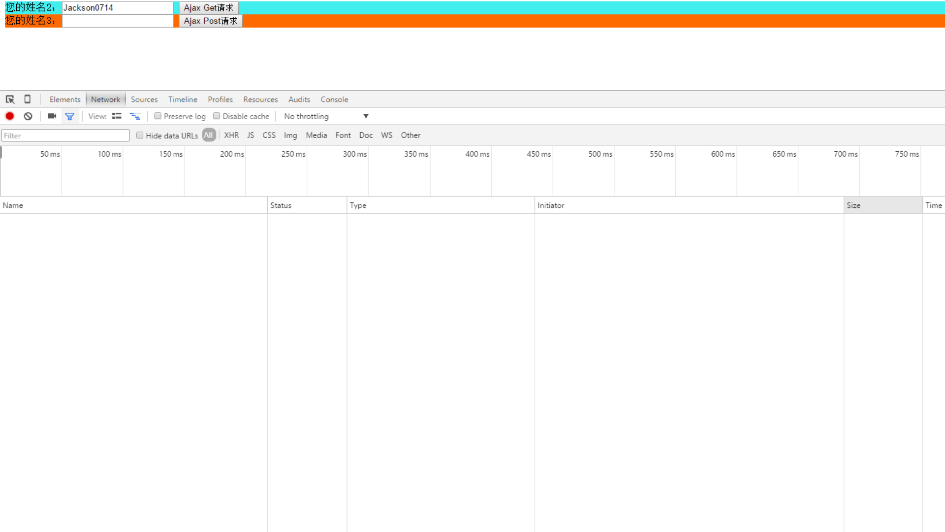 <!DOCTYPE html> <html lang="en" xmlns="http://www.w3.org/1999/xhtml"> <head> <meta charset="utf-8" /> <title></title> <script type="text/javascript" src="Ajax.js"></script> </head> <body> <div id="Test" style="background-color:#40eeee"> 您的姓名2:<input type="text" id="testGetName" size="20" /> <button type="button" onclick="testGet();">Ajax Get請求</button> </div> <div id="Test" style="background-color:#ff6a00"> 您的姓名3:<input type="text" id="testPostName" size="20" /> <button type="button" onclick="testPost();">Ajax Post請求</button> </div> <div id="myDiv" /> </body> </html>