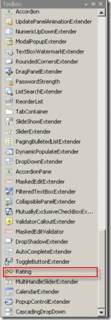 <ajaxToolkit:Rating ID="RatingRate" BehaviorID="RatingRate1" MaxRating="5" CurrentRating="3"