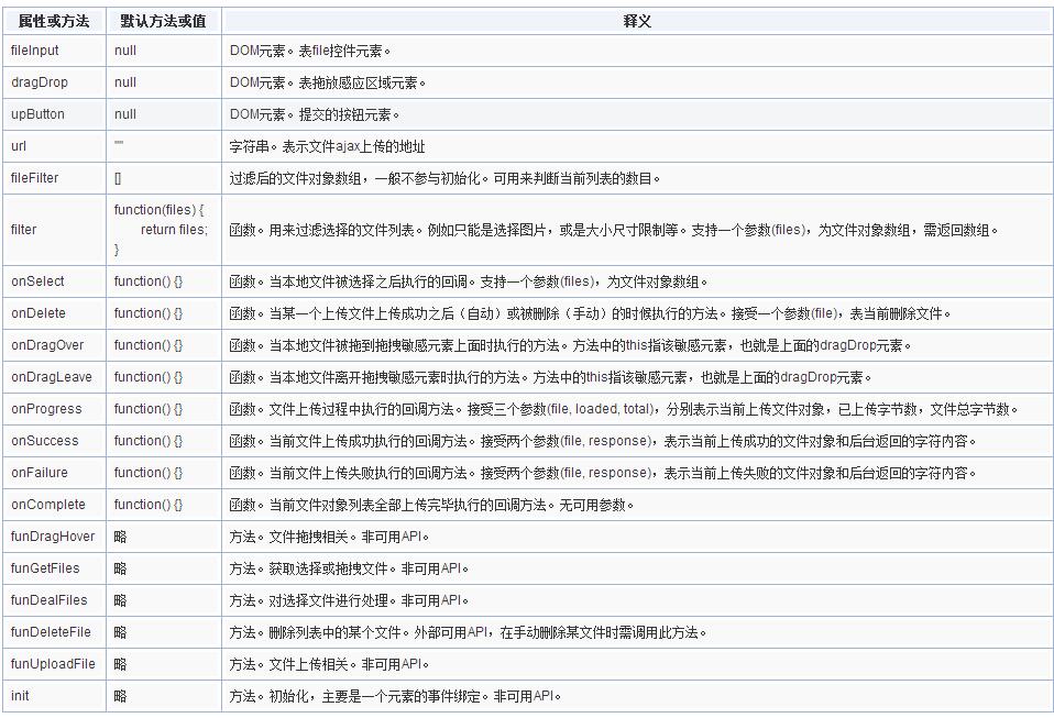 補充說明:上面多次提到的file參數指的是file object對象,該對象的屬性值有name, size, type等,然後,在zxxFile.js中,其還多了個方便元素定位的index索引屬性。