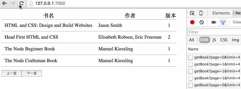 這樣一個基本的ajax請求就搭起來了,然後再響應“下一頁”按鈕: