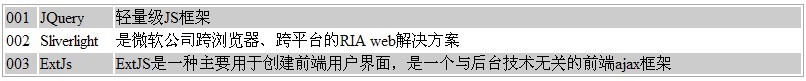 本示例大概功能是前台通過JQuery的Ajax調用一般處理程序(Handler),獲取表格需要顯示的信息,然後轉換成json格式返回給前台,前台獲取到數據後循環構建表格的行,最好把行附加到表裡。