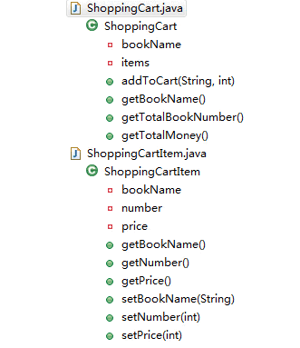 ShoppingCartItem:書的封裝,包括書名,數量,價格三個屬性,以及對應的getter和setter方法。