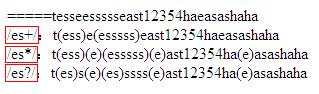 與“tesseessssseast12354haeasashaha”字符串相匹配,首先要與第一個字母e匹配,然後匹配s,s必須出現一次或多次,請看實例截圖。