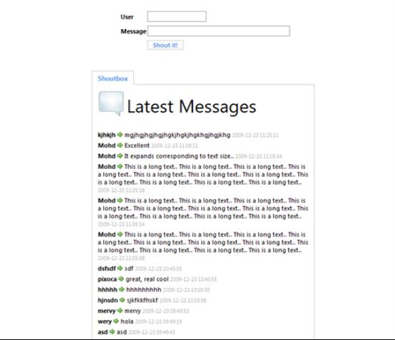 7、使用PHP和Ajax(jQuery)創建一個聊天室(http://yensdesign.com/2009/01/create-a-shoutbox-using-php-and-ajax-jquery)