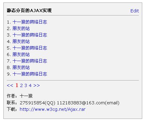最近因工作需要,要在靜態頁面上實現分頁,想了下,決定用AJAX來實現,所以就搗鼓了下面這麼個東西,截圖如下:
