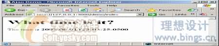 當用戶點擊"點擊這裡"鏈接時,浏覽器構建一個XMLHttpRequest對象,並把它發送到服務器-伴隨一個將調用say_when行動處理器的URL-它返回一個包含當前時間的HTML響應片斷。客戶端JavaScript接收到該響應並且通過它來用一個time_div id替換<div>的內容。