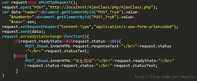 這段代碼構造一個XHR對象的實例request,並用它來建立異步請求。在onreadystatechange事件中,我們發現有readyState與status兩個屬性,其中readyState獲取AJAX狀態值,其值與含義如下: