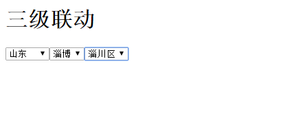 <!DOCTYPE html PUBLIC "-//W3C//DTD XHTML 1.0 Transitional//EN" "http://www.w3.org/TR/xhtml1/DTD/xhtml1-transitional.dtd"> <html xmlns="http://www.w3.org/1999/xhtml"> <head> <meta http-equiv="Content-Type" content="text/html; charset=utf-8" /> <title>無標題文檔</title> <script src="jquery-1.11.2.min.js"></script> <script src="sanji.js"></script> </head> <body> <h1>三級聯動</h1> <div id="sanji"></div> </body> </html>