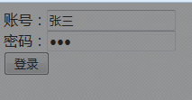 <div>賬號:<input type="text" id="uid" /></div> <div>密碼:<input type="password" id="pwd" /></div> <input type="button" value="登錄" id="btn" />