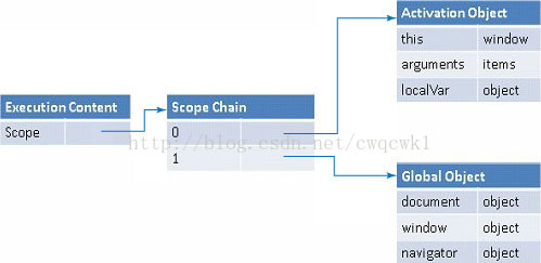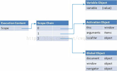 使用局部變量比使用全局變量快得多,因為在作用域鏈中越遠,解析越慢。下圖顯示了作用域鏈結構: