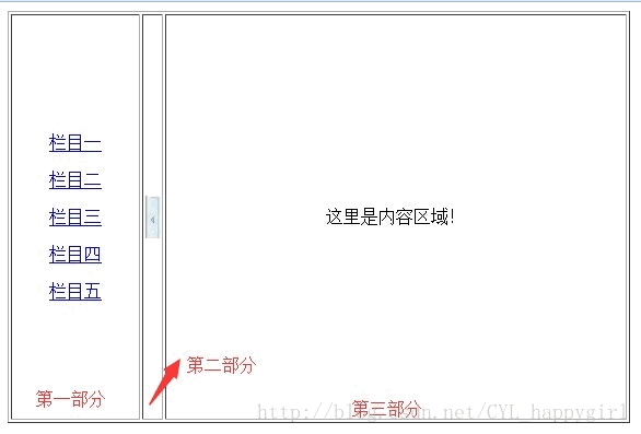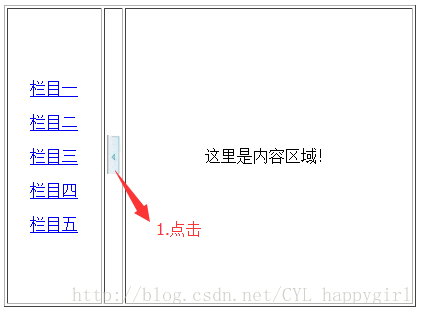 (2)說明:最初顯示的是“左箭頭”,點擊圖片會響應hide()事件,將欄目部分隱藏,同時將左箭頭換成右箭頭。當點擊“右箭頭”時會響應show()事件,顯示隱藏的欄目部分,同時將右箭頭換為左箭頭,又回到最初的狀態。這樣說來其實很簡單,做起來也很容易。