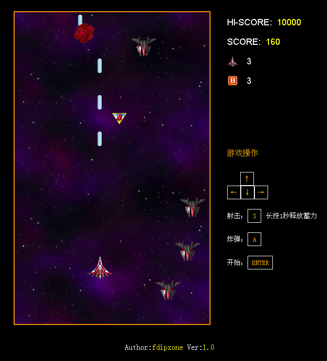1.戰機可發射子彈,子彈可通過獲取道具升級。