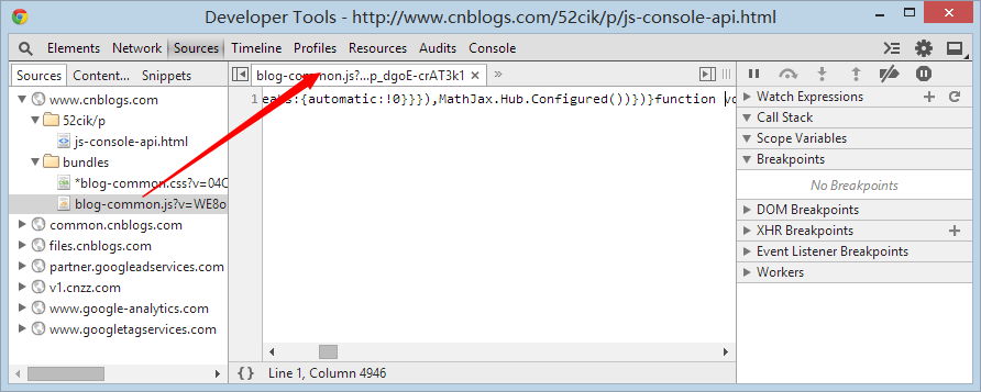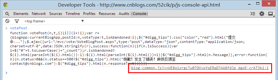 函數源碼粗顯啦,並且在右下角有個鏈接 blog-common.js?v=WE8o1xrgcTu07QVvwYqERqD7AA8fdJp_dgoE-crAT3k1:1 這個是什麼意思呢?