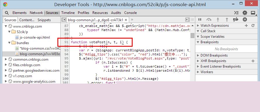 首先,我們知道了 推薦 這個功能調用的函數是 votePost(cb_entryId,'Digg') ,而且他是直接寫是 html 上通過 onclick 綁定的。