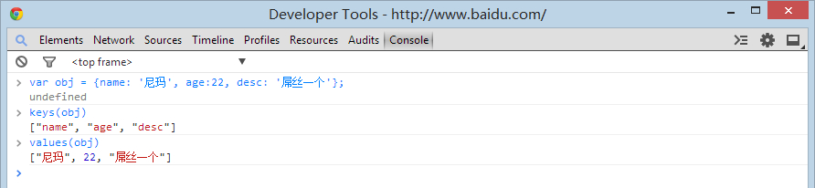 我們來簡單說下 keys 和 values 吧,這個之後也會用到。。但是有些人還是喜歡直接dir查看。
