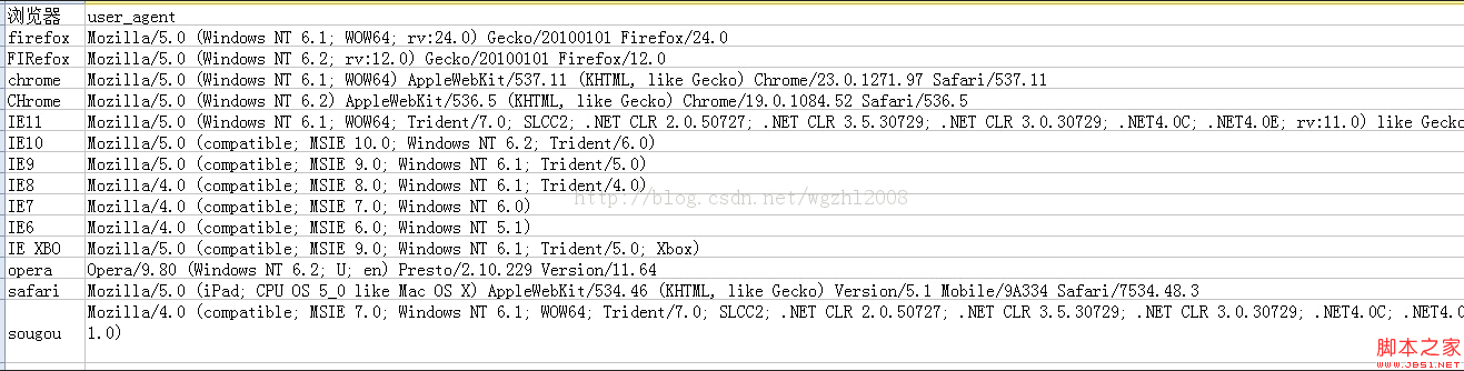 3、附幾種浏覽的user_agent..像360的兼容模式用的是IE、極速模式用的是chrom的內核