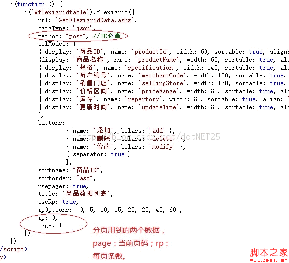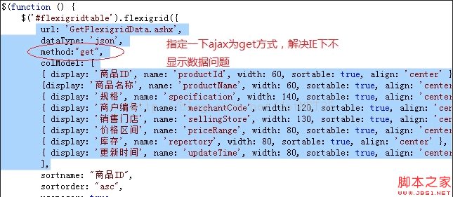 另外,flexigrid不是不可以使用“post”方式發送數據,而是“post”方式在IE下必須要有供post的數據,比如在分頁的時候可以使用post方式,而在你沒有什麼數據要發送的話,一定要使用“get”方式,其它浏覽器可能對這個要求不嚴格,而IE要求較嚴: