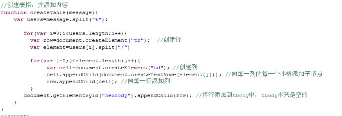 cell.appendChild(document.createTextNode(message)); 就是向列的每一個小格添加子節點和內容(必寫)