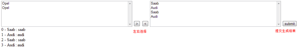 <input type="button" value=">" onclick="toRight();submit()"/>