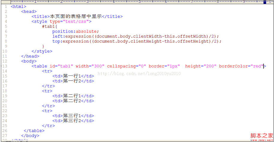 上篇博客說的是將div設置為居中顯示,今天來分享一下如何將表格居中的顯示。至於居中的原理就不說了,可以看一下我的上篇博客,這次沒有使用window的兩個事件,而是使用一個叫expression的函數。現在多數的浏覽器都支持這個函數。在寫上一篇博客的時候,我腦裡想能不能把計算後的值賦給css的left和top屬性呢?後來查閱資料找到了這個函數。這個函數用來把CSS屬性和JavaScript表達式關聯起來,這裡的CSS屬性可以是元素固有的屬性,也可以是自定義的屬性。就是說CSS屬性後面可以是一段JavaScript表達式,CSS屬性的值等於JavaScript的結果。在表達式中可以直接引用元素自身的屬性和方法,也可以使用其他浏覽器對象。這個表達式就好像是在這個元素的一個成員函數中一樣。