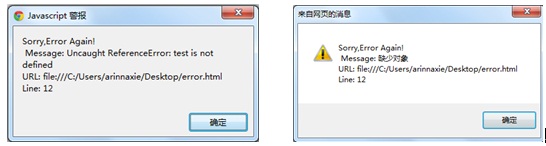 如果不希望浏覽器在默認對話框中顯示出錯消息,讓onerror方法返回true即可。