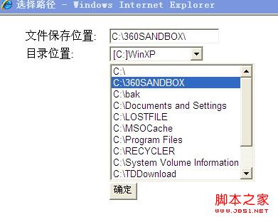 3.點擊“確定”,關閉選擇路徑頁面"dir.html",將選擇的路徑值返回到主頁面"select.html"文本框上
