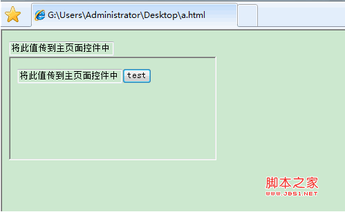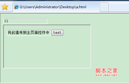 <input id="test" type="text" value="將此值傳到主頁面控件中" />