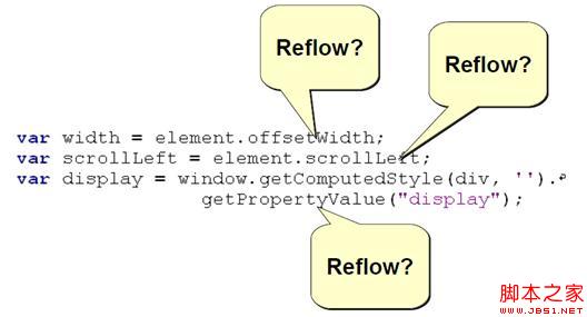 這些屬性和方法的訪問和調用,都會觸發 Reflow 的產生,我們應該盡量減少對這些屬性和方法的訪問和調用,參考如下代碼: