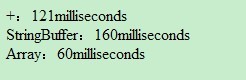 document.write("<br/>StringBuffer:" + (d2.getTime() - d.getTime()) + "milliseconds");
