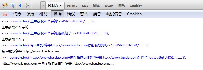 console.log('http://www.baidu.com有兩個相同url的字符串http://www.baidu.com好嗎?'.cutStrButUrl(51, '......'));