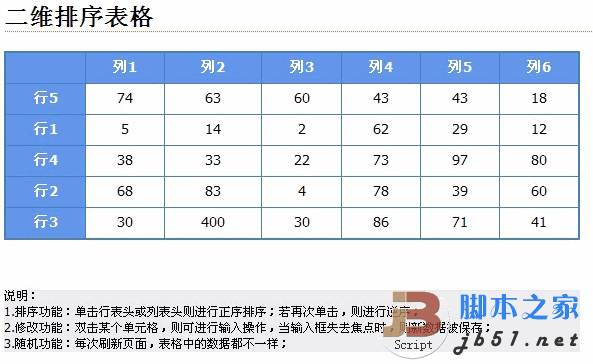 javascript 二維排序表格代碼